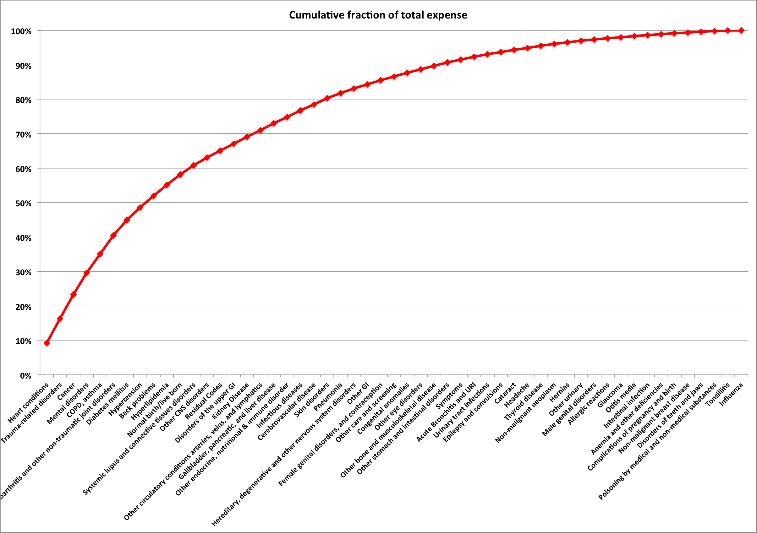 - If we move toward explicit or implicit rationing of healthcare, as is done in many other countries, then the top 5-10 clinical conditions seem likely to attract the attention of the rationers.
