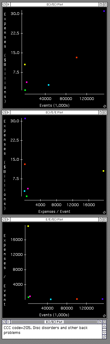 Most ($31B) of the costs falling into the back problem category come from a single clinical condition code #205 (Spondylosis; intervertebral disc disorders; other back problems).